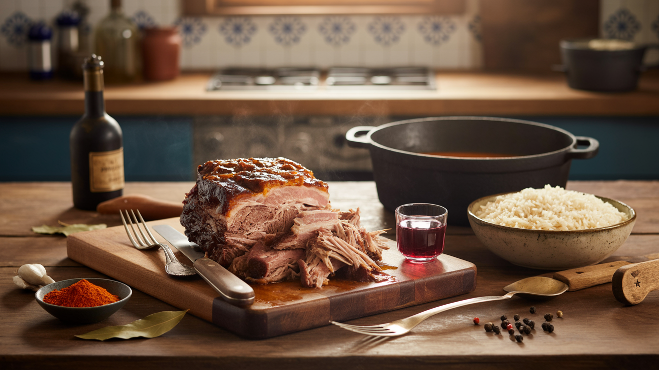 Melt-in-your-mouth pulled pork slow-cooked until perfectly tender, finished with a savory, caramelized sauce and served over fluffy rice. Fork-tender meat with deep, slow-developed flavor — the kind of satisfying meal that takes all day to make and minutes to enjoy.