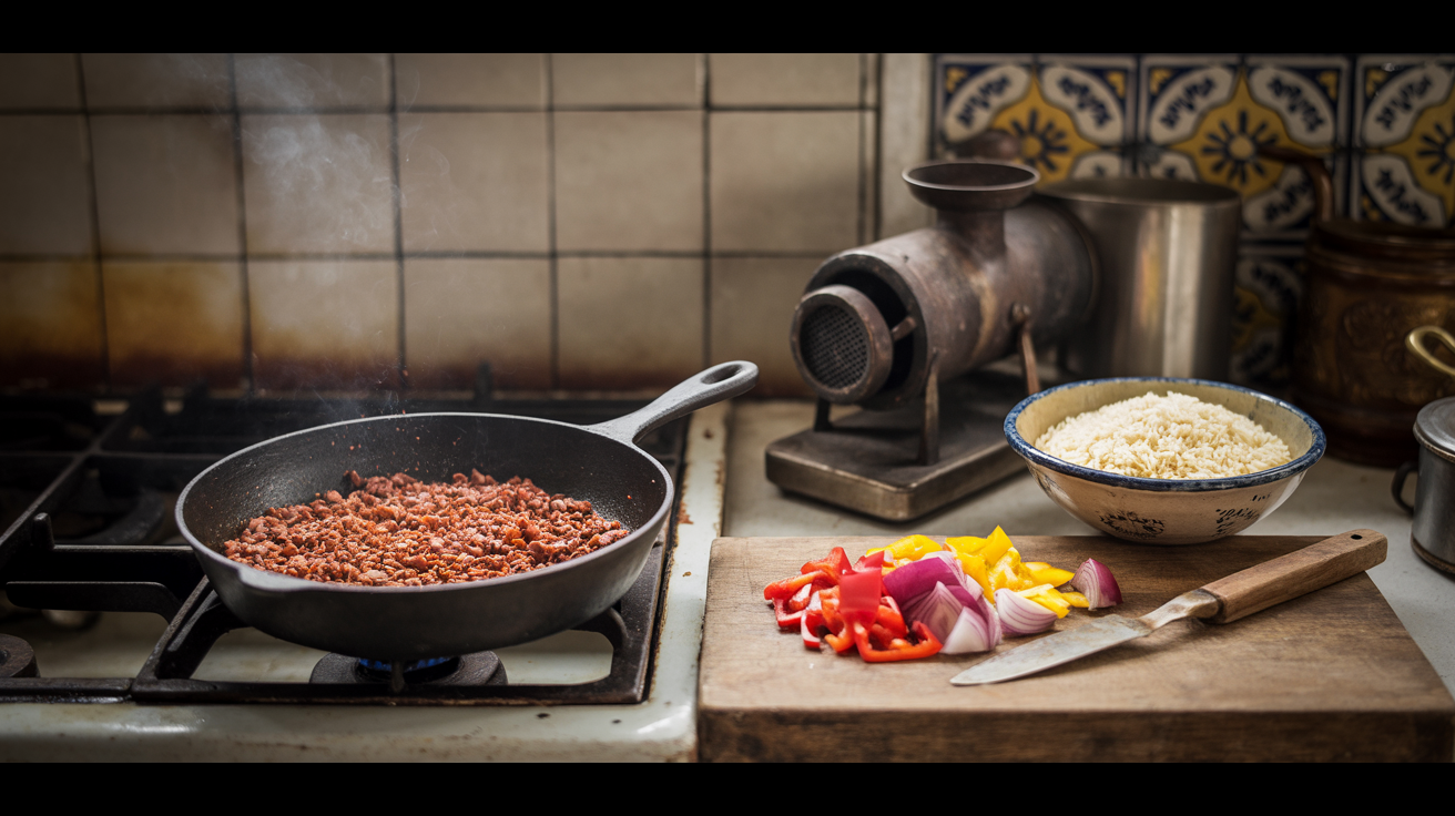 Boldly seasoned ground chouriço — our signature pork sausage crafted with paprika, garlic, and warm spices — tossed with sautéed peppers & onions over a bed of savory rice. A New England classic with deep, satisfying flavor in every bite.